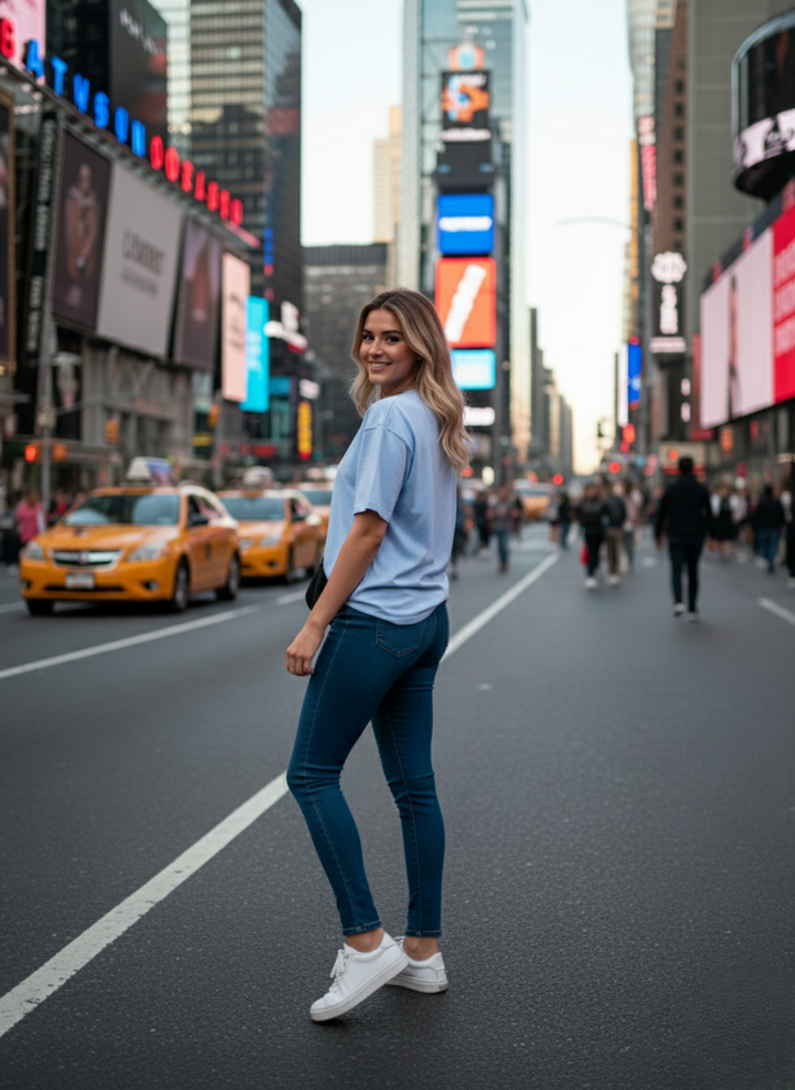 Women Drop Shoulder Tee - Sky Blue