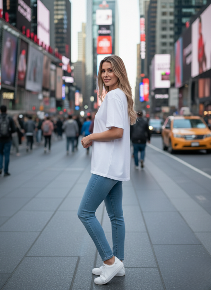 Women Drop Shoulder Tee - White