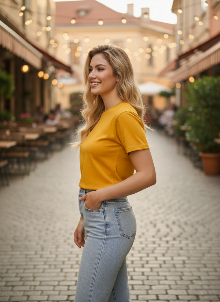 Women Plain Tee - Mustard